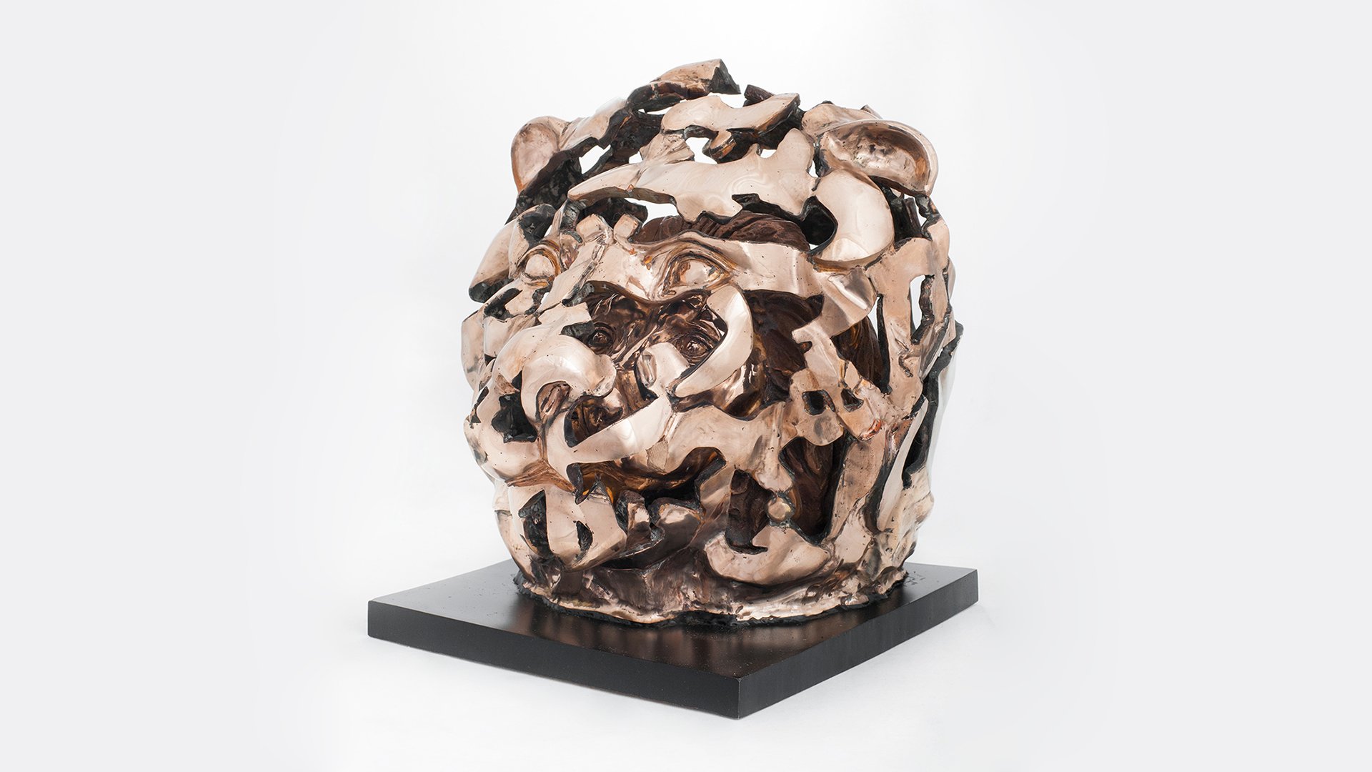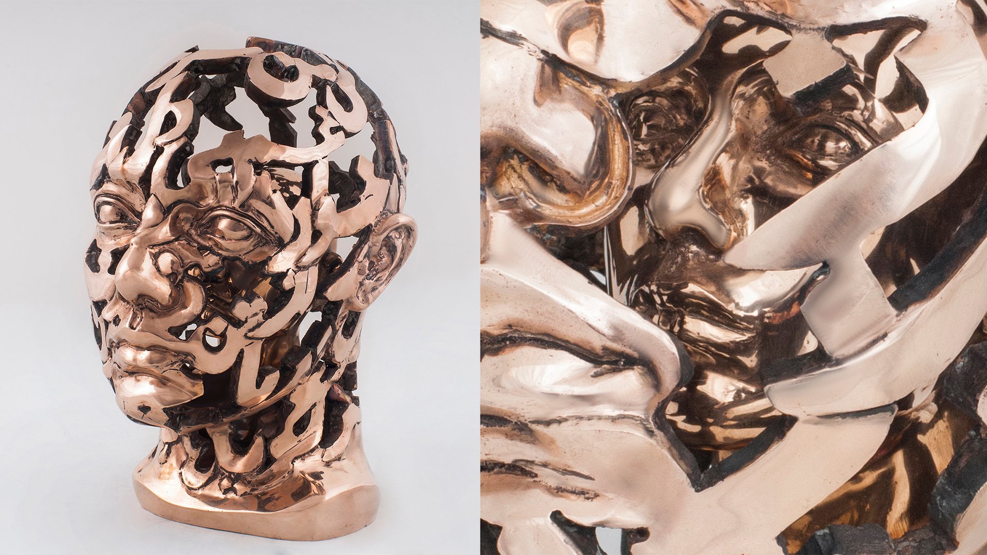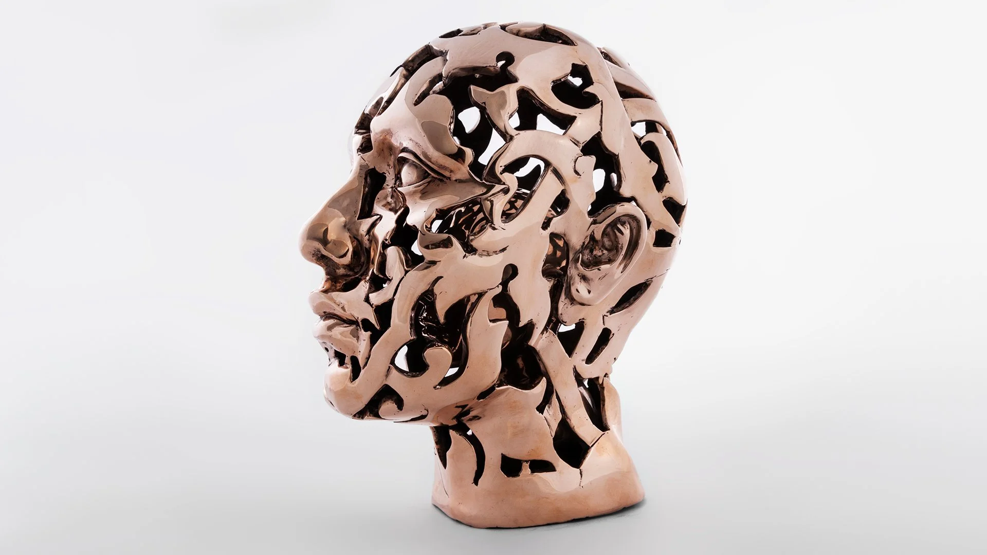 The Lost Object presents a realistic bust of the artist enclosed within a larger, openwork version of itself, composed of Persian visual elements and inscribed with poetry in the artist’s own handwriting. Drawing on verses by Rumi, the lattice-like outer form evokes the spiritual notion that the body is a vessel secondary to the soul. The poems, legible through the play of light and shadow on the inner bust, reveal how language, literature, and cultural heritage shape the self.